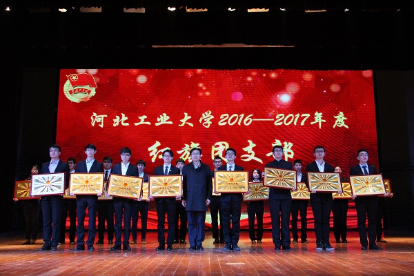 为深入贯彻党的十九大精神,培育和践行社会主义核心价值观,2017年12月9日下午,河北工业大学红旗团支部展示暨团系统表彰大会在大学生活动中心礼堂隆重举行。我院产品151团支部在各院优秀团支部中脱颖而出,以第一名的优异成绩荣获“天津市红旗团支部”“河北省优秀班集体”“河北工业大学红旗团支部标兵”“最佳风采团支部”称号。